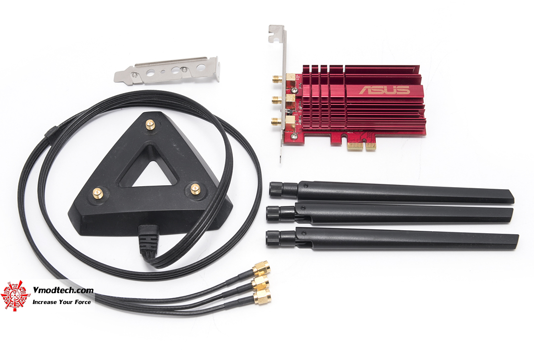 อุปกรณ์ที่มาทั้งหมดครับ ก็จะมีโครงสำหรับติดตั้งเสาสัญญาณ เสาสามต้น และตัวโมดูลในรูปแบบอินเตอร์เฟส PCI express