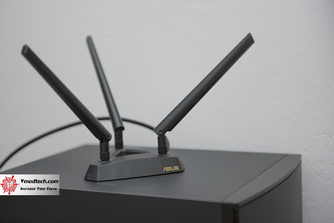 เมื่อประกอบเสาทั้งสี่ต้นเข้ากับ ASUS RT-AC87U มันทำให้เราเตอร์นี้ดูดุดันน่าเกรงขามมาก