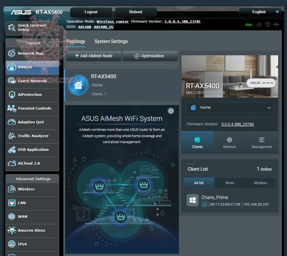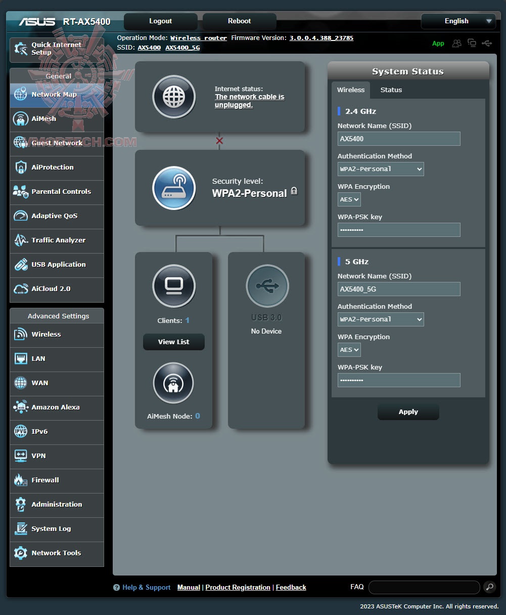 รูปด้านบนคืออินเตอร์เฟสหลักของเมนูใน RT-AX5400 นะครับ หน้าตาก็เป็นเมนูของ ASUS นั่นละครับ