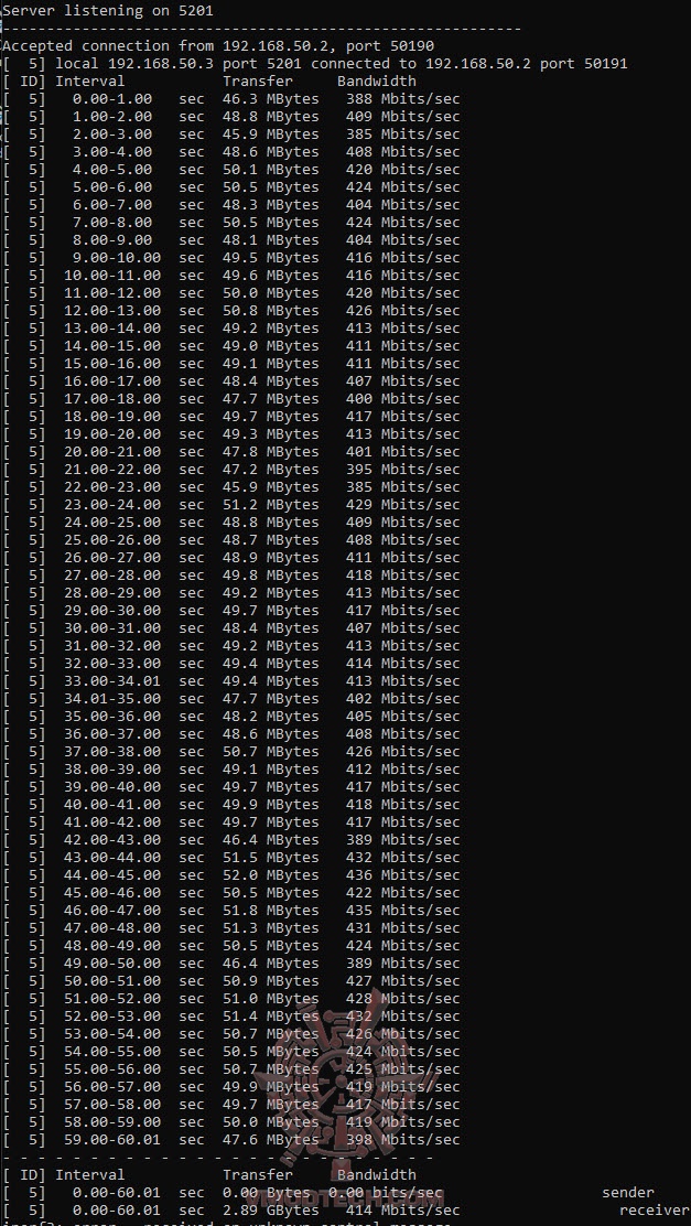 ผมยังคงเทสเฉพาะความเร็วในการส่งผ่านข้อมูลทางย่าน 5 GHz เหมือนเดิมนะครับเพื่อหาว่าความเร็วนั้นสูงสุดอยู่ที่เท่าไหร่ ความเร็วขา server นั้น สูงครับที่เฉลี่ย 414 เมกกะบิทต่อวินาที