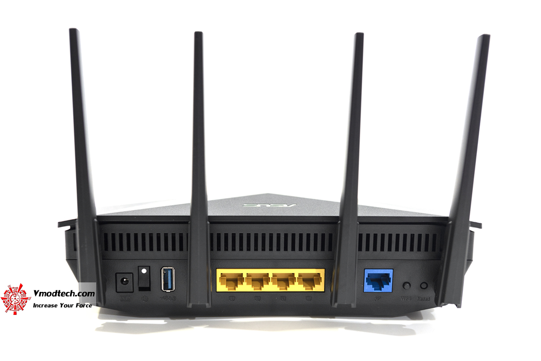 สวิทซ์เปิด/ปิดที่ด้านซ้ายสุด ถัดมาเป็นช่องเสียบไฟเลี้ยง พอร์ทเชื่อมต่อด้านหลังนั้นก็จะมี Wan พอร์ท 2.5G มาให้ นอกจากนั้นเป็น Gigabit Lan สี่ช่อง ช่องเสียบ USB 3.2 Gen 1