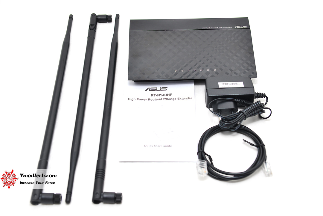 ของที่มากับแพกเกจนี้ทั้งหมดครับก็จะประกอบไปด้วยตัว Router ASUS RT-N14UHP คู่มือ Adapter และเสากระจายสัญญาณ 9 dB จำนวนสามเสา และสายแลนอีกหนึ่งเส้น