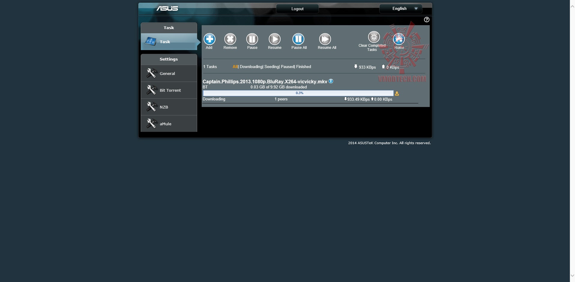 วิธีการใช้งานก็ไม่ยากเลยครับ การควบคุมง่ายมาก ดาวน์โหลด torrent file มาแล้วก็โยนเข้าไปที่ ASUS RT-N14UHP ความเร็วก็ปกติครับเท่ากับความเร็วอินเตอร์เนตของเรา