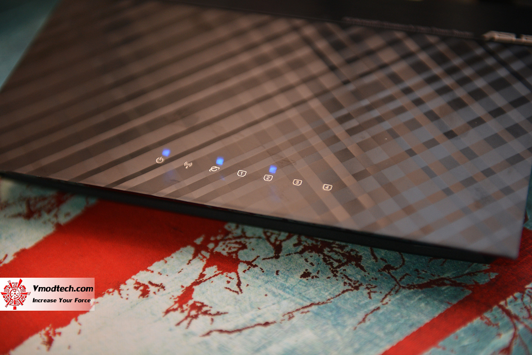 ไฟแสดงการทำงานเมื่อเราเสียบไฟครับ เรียงจากซ้ายมาขวาก็จะเป็น Power, Wifi, Internet ส่วนด้านขวาสี่ดวงจะเป็นไฟแสดงการเชื่อมต่อพอร์ดแลนครับ