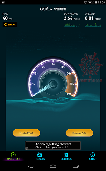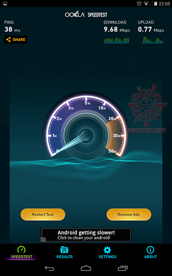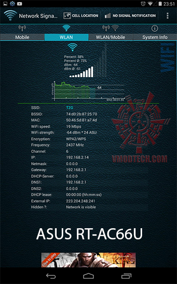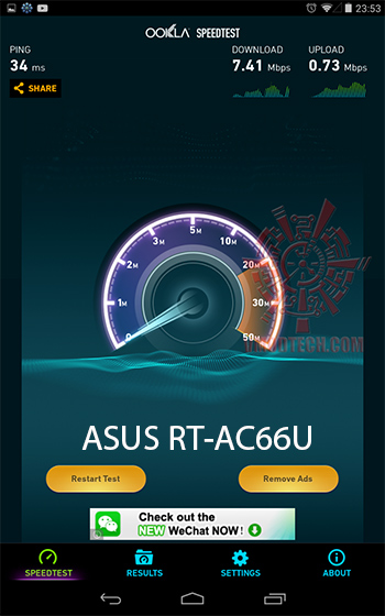 ลองเทียบความแรงของการเชื่อมต่อที่ระยะเดียวกันคือ ระหว่าง Router ถึง tablet ประมาณ 30 เมตรและมีกำแพงขวางสองชั้น ความแรงในการส่งนั้น AC66U ทำได้ดีกว่าครับ การเชื่อมต่อกับอินเตอร์เนตนั้นต้องยอมรับครับว่า AC66U นั้นสามารถส่งได้ไกลกว่าและเสถียรกว่าบนย่านความถี่ 2.4GHz เหมือนกัน แต่อย่าลืมครับว่า ASUS RT-AC66U นั้นราคาสูงกว่าเยอะครับ