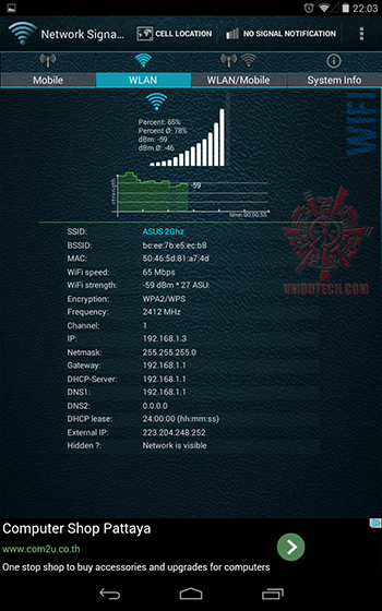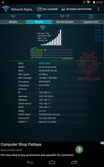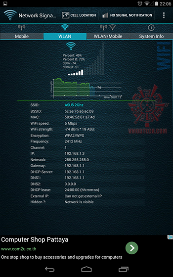 ผมลองทดสอบการเชื่อมต่อระหว่าง Mobile Device เพื่อเชื่อมต่ออินเตอร์เนตดูครับ ตรงนี้ผมใช้ ASUS NEXUS 7 ทำการทดสอบเชื่อมต่อกับ ASUS RT-N14UHP ครับ