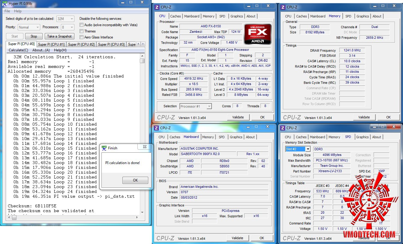 HyperPI 32MB 8Core 8Theards ความเร็วซีพียูที่ 4.9Ghz บัสแรม 2480 ผ่านไปสบายๆครับ เสถียรกันในระดับนึงเลยทีเดียว เราไปชมผลเทสอื่นๆต่อกันเลยครับ