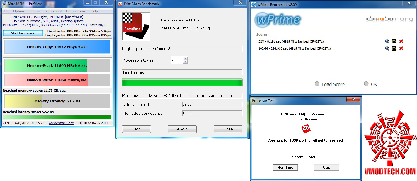 wPrime2.09 , CPUMark99 MaxxMem & Fritz Chess Benchmark