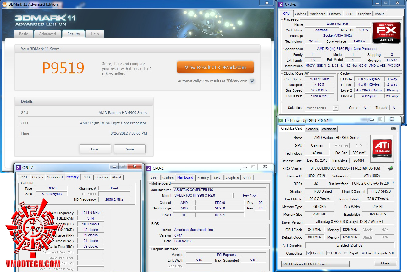 3DMark11 ก็แรงตามกันมาครับ 9519คะแนนกันเลยทีเดียว แรงกันทุกโปรแกรมตามมาตราฐานของ FX ครับผม