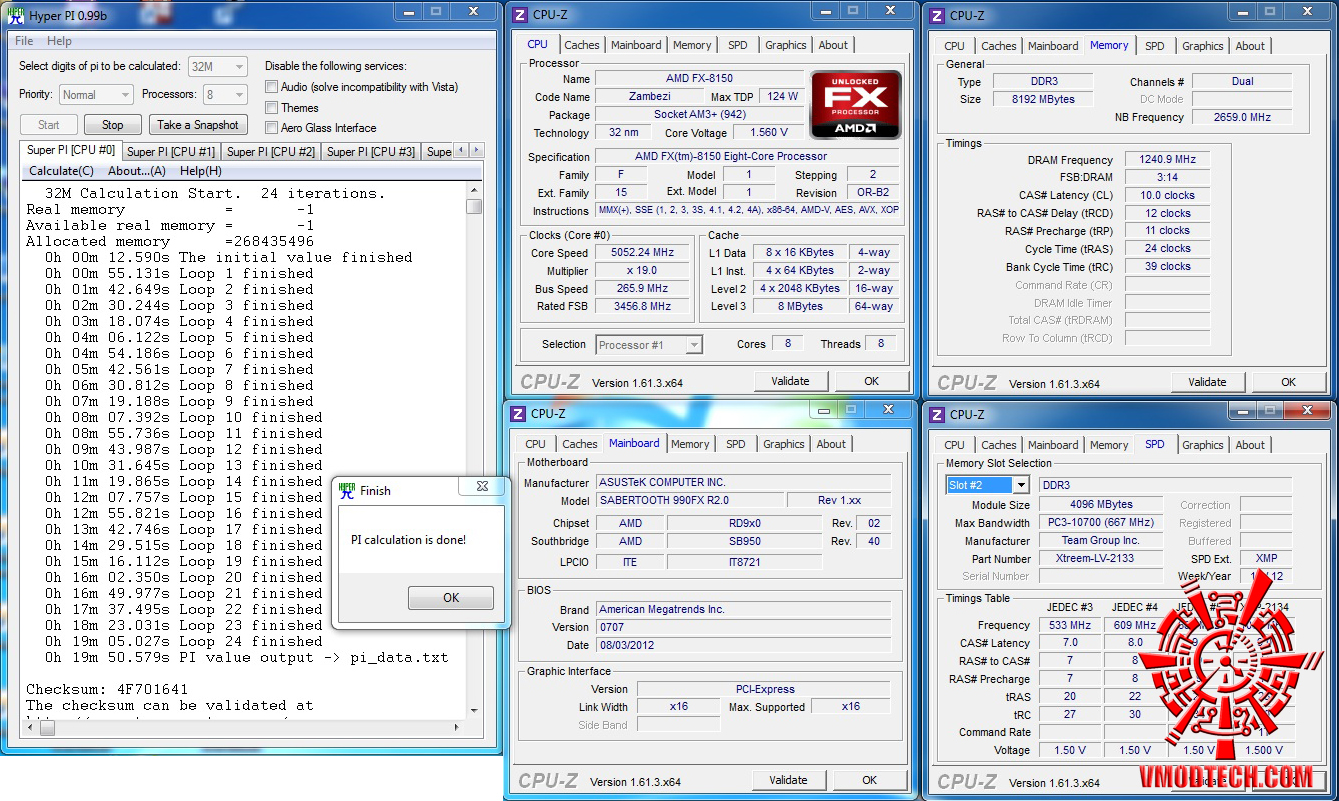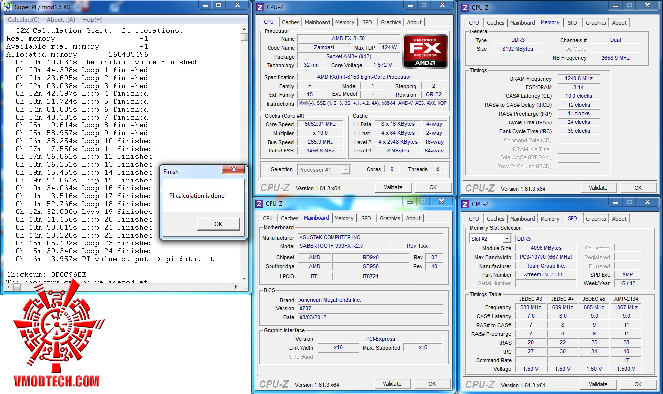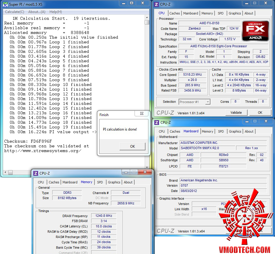 SuperPI 1MB ลง16.224วินาทีกันไปเลยครับ โอ้…ใครบอกว่า PI ของ FX ช้า ไม่จริ๊งไม่จริงครับ ทำงานร่วมกับ ASUS SABERTOOHT 990FX R2.0 สามารถทำความเร็วลงมาได้ที่ 16วิฯต้นๆได้ ไม่ธรรมดาแล้วครับแบบนี้ เง้อ…
