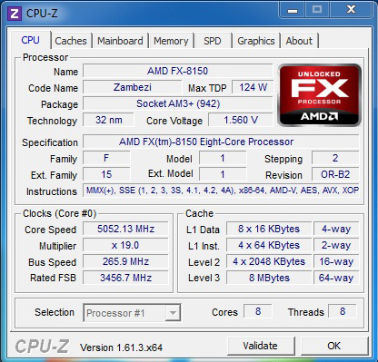 CPU-Z ID Ver.1.61.3 แสดงผลอย่างถูกต้องครับผม ไม่มีปัญหาของบั๊กมารบกวน AMD-FX แต่อย่างใดครับสำหรับเมนบอร์ดตัวนี้