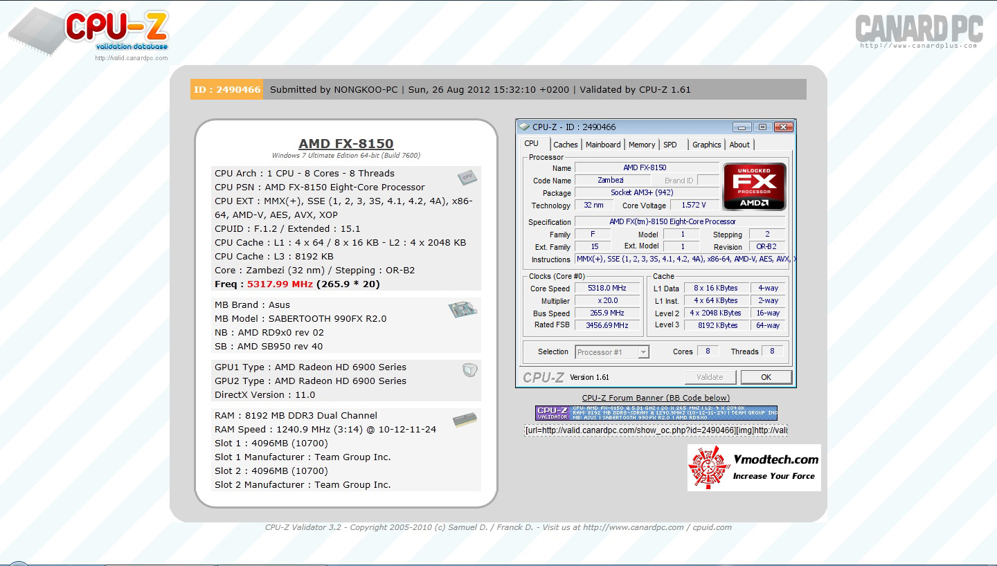 ตบท้ายอีกเหมือนเดิมครับ ลองอัดไปเอาใจแฟนๆAMD ว่าเมนบอร์ด ASUS SABERTOOHT 990FX R2.0 ประสานงานการทำงานกับ AMD FX-8150 จัดกันแบบเต็มๆที่ความเร็วซีพียู 5.317Ghz ของแรงๆเราต้องโชว์ประสิทธิภาพกันหน่อยครับ