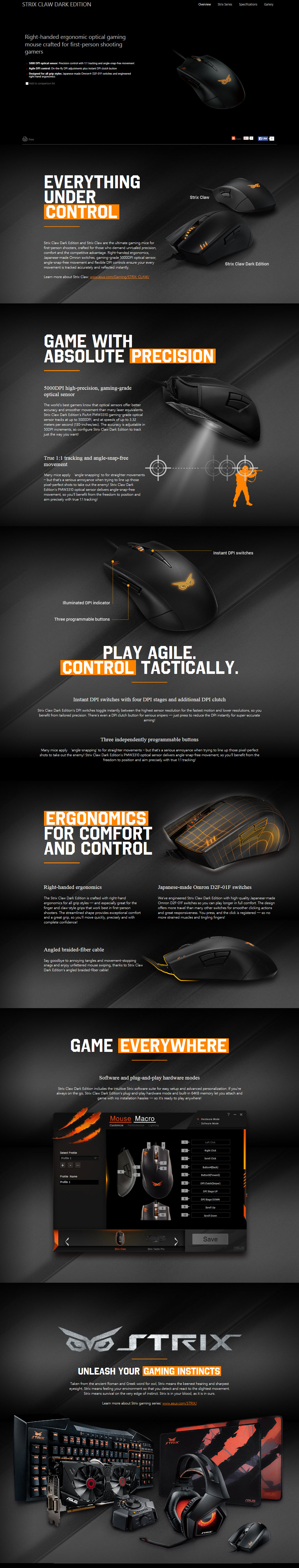 ตัว STRIX CLAW DARK EDITION นั้นจะเป็นเมาส์ที่ใช้เซนเซอร์แบบ optical ธรรมดาๆที่มีความไวสูงสุดที่ 5000 dpi ครับ