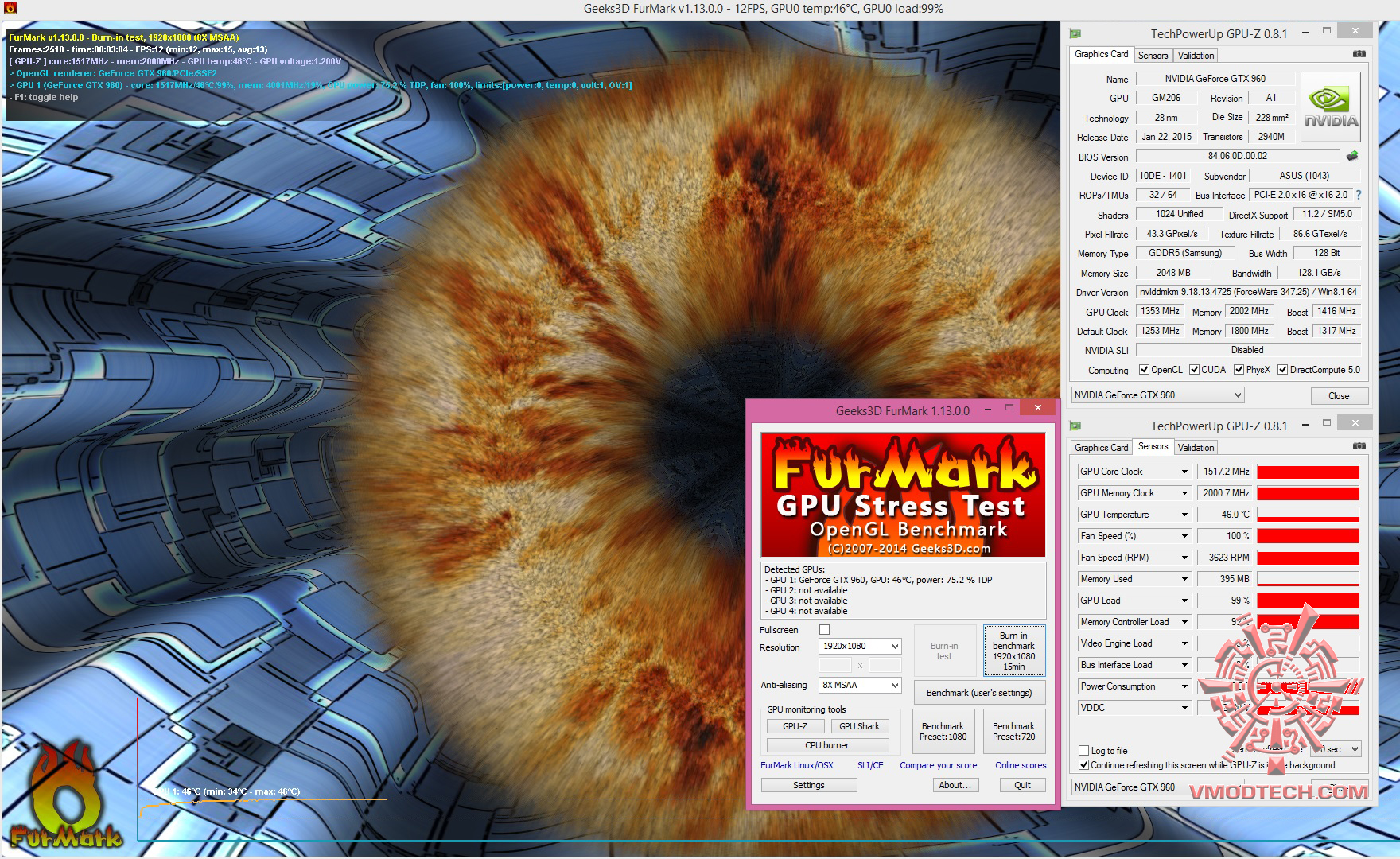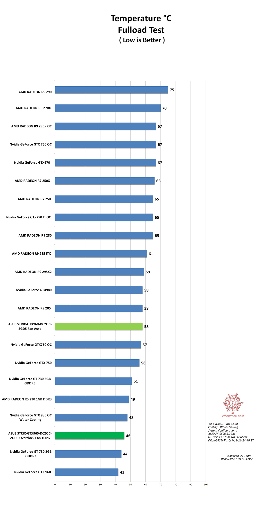 ผ่านกันไป กับ การทดสอบความเสถียรของการ์ดจอแบบนิ่งๆใช้งานกันได้จริงครับสำหรับชุดทดสอบ Furmark ที่กดกันแบบเต็มๆ โดยอุณหภูมิในสถานะเดิมๆฟูลโหลดอยู่ที่ 58องศาฯเท่านั้น เย็นมากๆครับ ส่วนสถานะโอเวอร์คล๊อกฟูลโหลดอยู่ที่ 46องศาฯ ในรอบพัดลมทำงานที่ 100เปอร์เซ็นโดยอุณภูมิห้องราวๆ 25-28องศาฯ ส่วนเรื่องเสียงรบกวนเงียบดีครับแม้จะเปิดพัดลมเต็มๆที่ 100 เปอร์เซ็นแล้วก็ตาม ถือว่าเย็นมากๆกับระบบ DirectCU II with 0dB fan technology ของ ASUS STRIX ซีรี่ย์