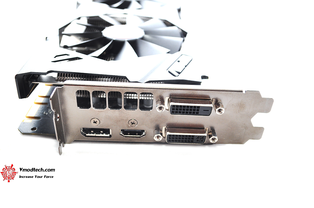 อินเตอร์เฟสด้านหลังประกอบด้วย DVI Output : Yes x 1 (DVI-I), Yes x 1 (DVI-D) , HDMI Output : Yes x 1 (HDMI 2.0) ,Display Port : Yes x 1 (Regular DP) , HDCP Support : Yes