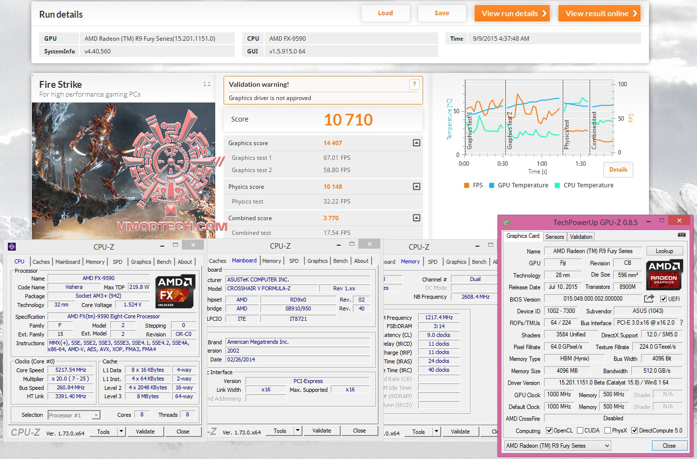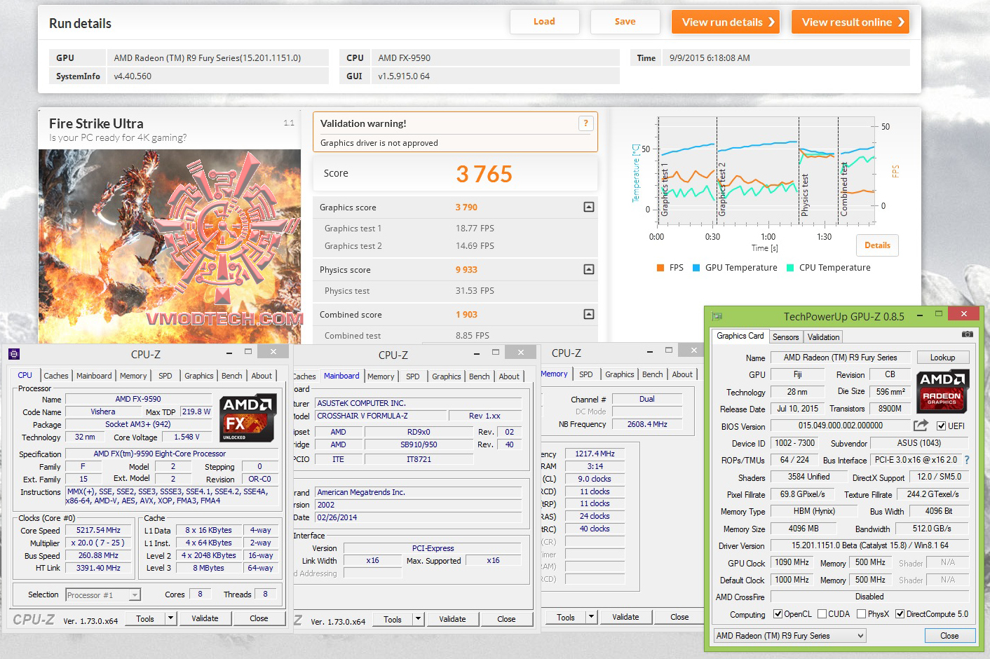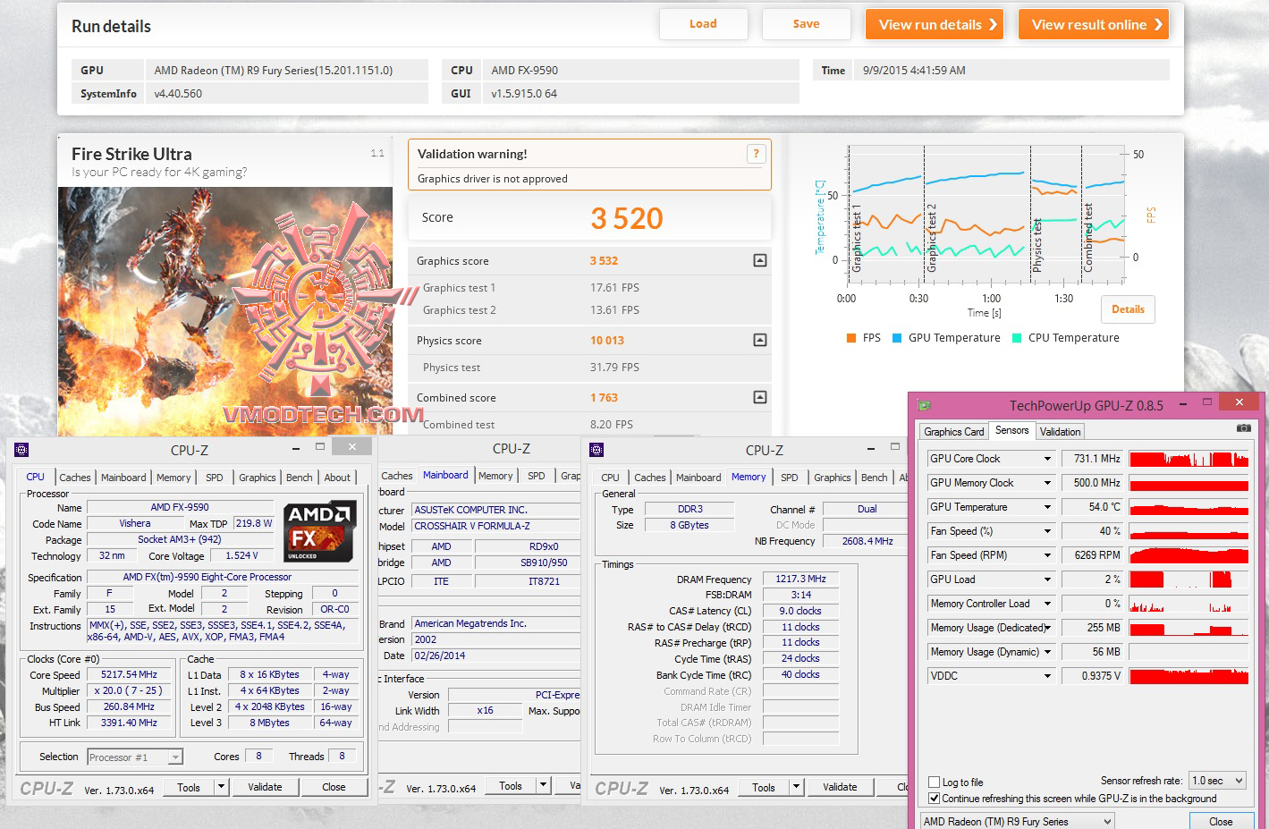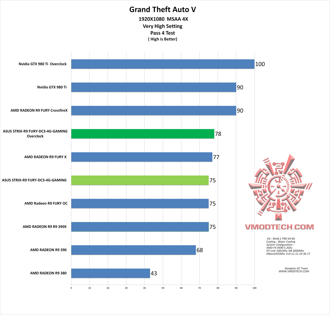 ก็มาถึงช่วงท้ายกันครับสำหรับการทดสอบ ASUS STRIX-R9 FURY-DC3-4G-GAMING ที่ วันนี้สร้างประสิทธิภาพออกมาได้ในระดับ Hi End กันจริงๆ ด้วยฟีเจอร์ที่มากมายที่ออกแบบมาสำหรับบรรดาเกมส์เมอร์ขาแรง ทั้งวัสดุอุปกรณ์ที่ออกแบบมาอย่างทนทานต่อการใช้งานที่ทาง ASUS เน้นเป็นพิเศษรวมไปถึงรูปลักษณ์ที่สวยงามคงเอกลักษณ์ของ ASUS STRIX ได้เป็นอย่างดีครับไม่ว่าจะเป็นระบบระบายความร้อนชั้นเยี่ยมอย่าง DirectCU III ที่ทำผลงานออกมาได้ดีเยี่ยมจริงๆในเรื่องของความร้อนที่ไม่เป็นปัญหาแน่นอนครับอีกทั้งเสียงรบกวนนั้นแทบไม่มีเลยจริงๆ มาดูในส่วนของประสิทธิภาพด้าน 3D และ Gaming ก็ทำผลงานออกมาได้ดีครับเล่นกันได้อย่างลื่นไหลทุกเกมส์ทั้งในปัจจุบันและบรรดาเกมส์ที่กินสเปคมากๆ ASUS STRIX-R9 FURY-DC3-4G-GAMING เอาอยู่ทุกเกมส์แน่นอนครับ ด้วยเทคโนโลยีใหม่ของ AMD อย่าง HBM ทำให้อัตราการบริโภคไฟที่ต่ำลงแต่ประสิทธิภาพการทำงานที่แรงขึ้น ผมมองว่าน่าจะเหมาะกับเกมส์เมอร์ที่ชื่นชอบความแรงความสวยงามรวมไปถึงความทนทานที่ทาง ASUS จัดให้แบบเต็มๆกับ ASUS STRIX-R9 FURY-DC3-4G-GAMING คงเป็นตัวเลือกที่คุ้มค่าเป็นอย่างมากเลยทีเดียวครับ สำหรับราคาวางจำหน่ายในประเทศไทยอยู่ประมาณที่ 2XXXXบาท สำหรับ ในวันนี้กระผมก็ขอตัวลาไปก่อน พบกันใหม่เร็วๆนี้กับรีวิวอุปกรณ์ใหม่ๆจัดเต็มทุกการทดสอบที่ Vmodtech.com สวัสดีครับ