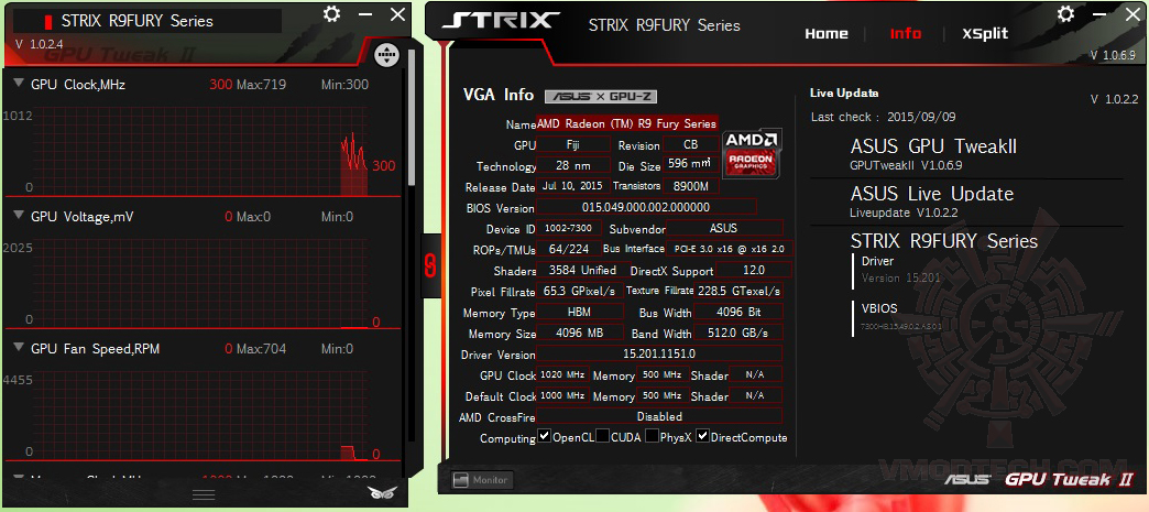 ความเร็วเดิมๆของ ASUS STRIX-R9 FURY-DC3-4G-GAMING ครับ Baseclock Core 1000Mhz Memory 500Mhz เป็นสเปกเดิมๆที่มาจากโรงงาน ซึ่งท่านสามารถใช้โหมด OC Mode ได้ โดยความเร็ว CORE จะเพิ่มขึ้นมาที่ 1020Mhz ครับผม