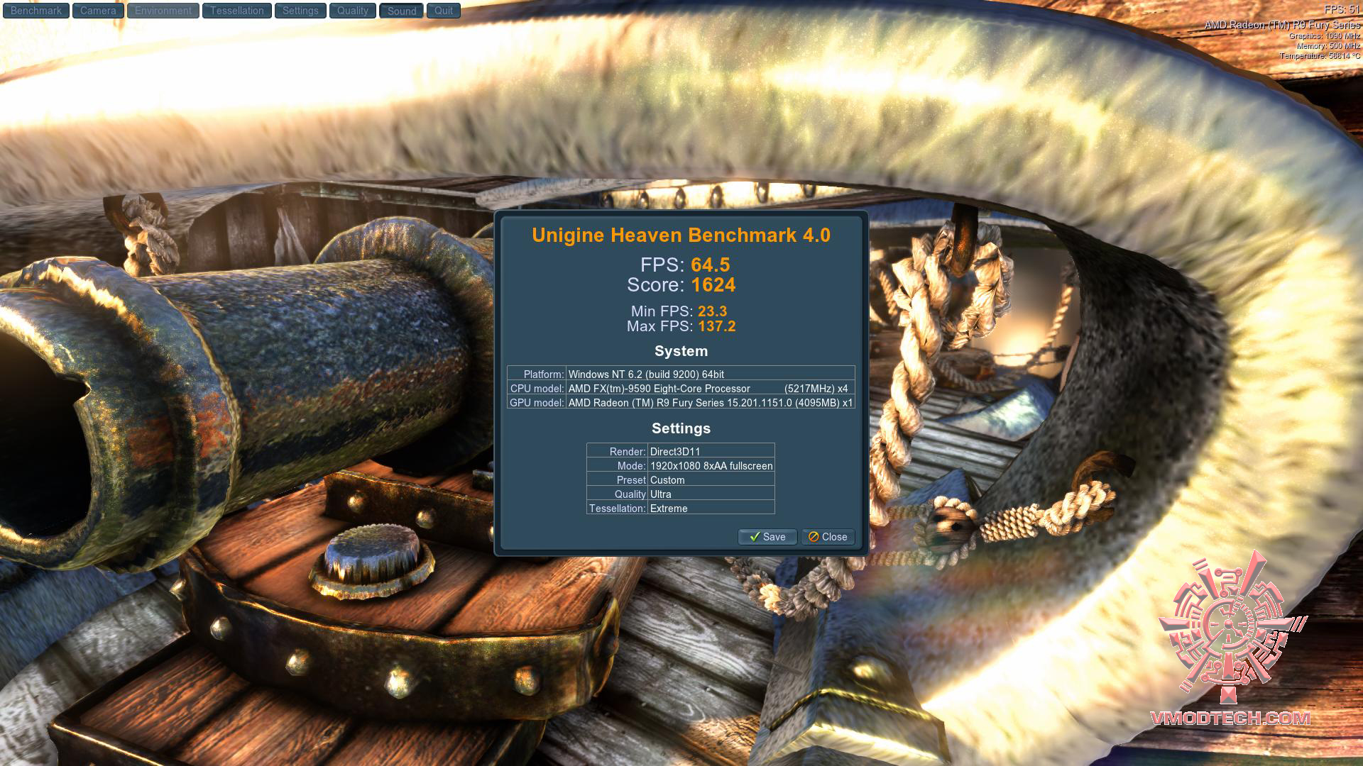 Unigine Heaven 4.0 โอเวอร์คล๊อกแล้วอยู่ที่ 64.5ฟรมเรต แรงแบบลื่นไหลสุดๆครับ