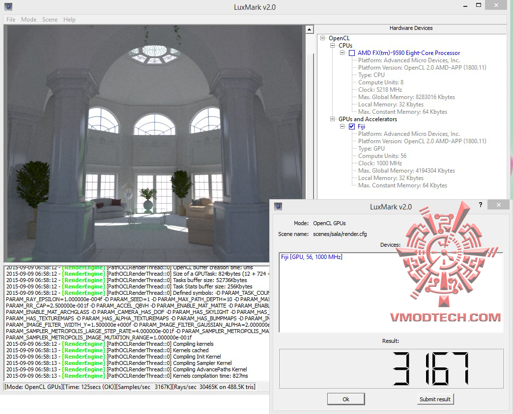 LuxMark โปรแกรมเทสด้าน Open CL อยู่ที่ 3167คะแนน แรงมากเลยทีเดียว
