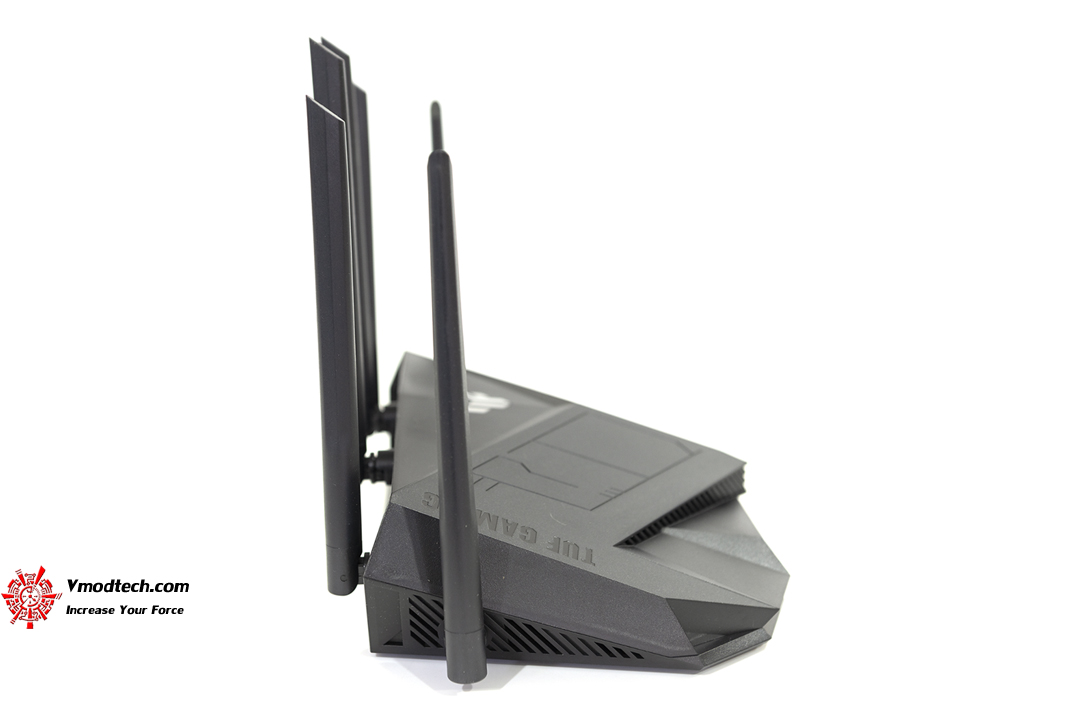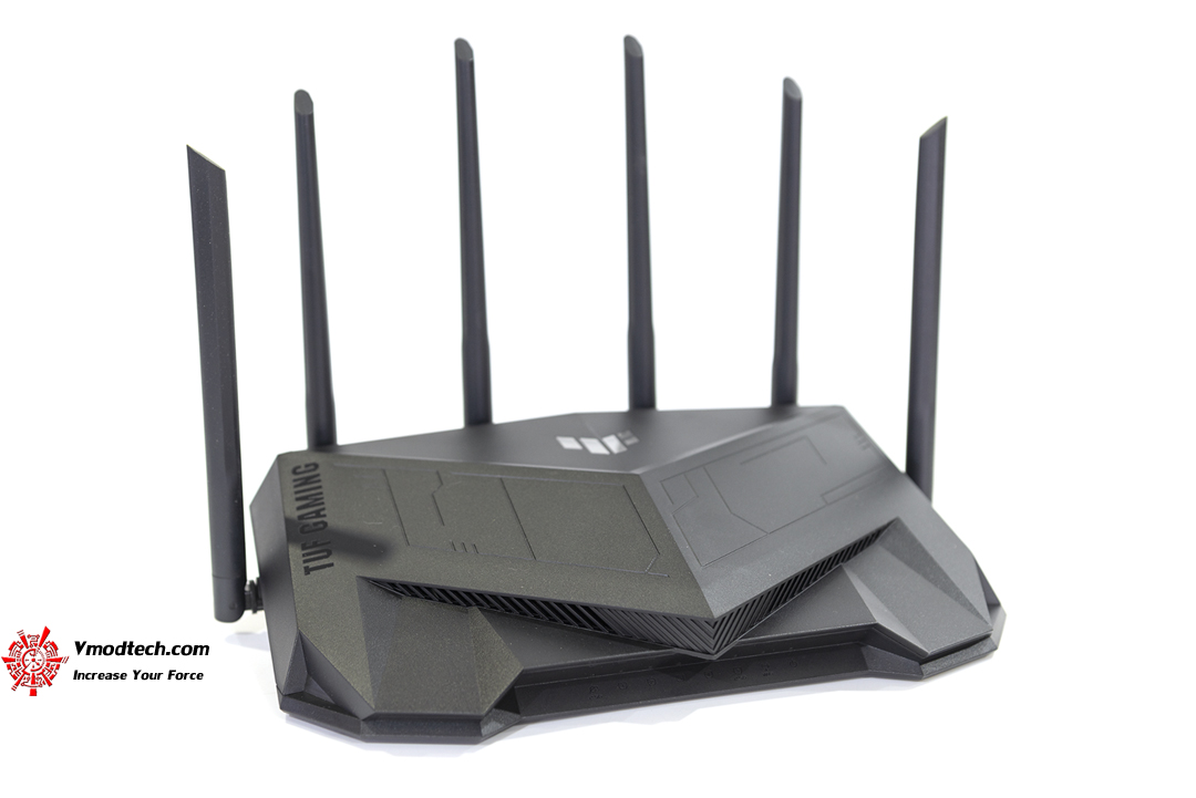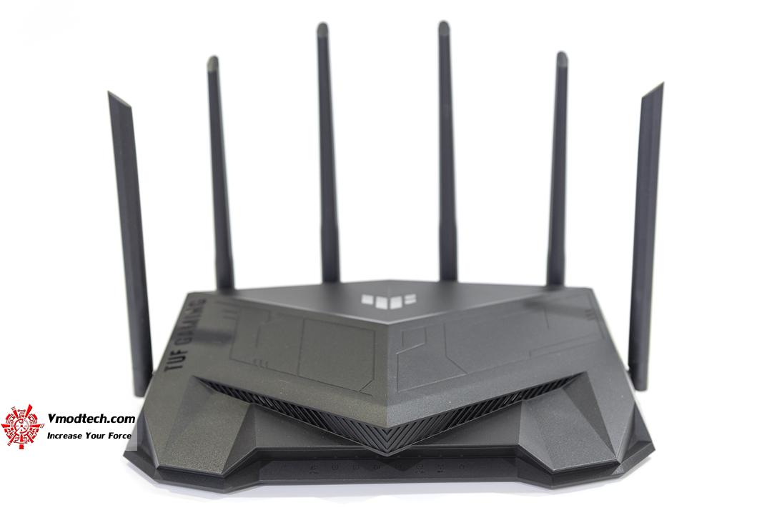 ตัว TUF Gaming AX6000 นั้นจะมีลักษณะสีเหลี่ยมวางตัวถังในแนวนอน การขึ้นรูปตัวถังนั้นก็จะมีเทกเจอร์สวยงามสไตล์ TUF Gaming ที่ออกจะแข็งแรงดุดัน