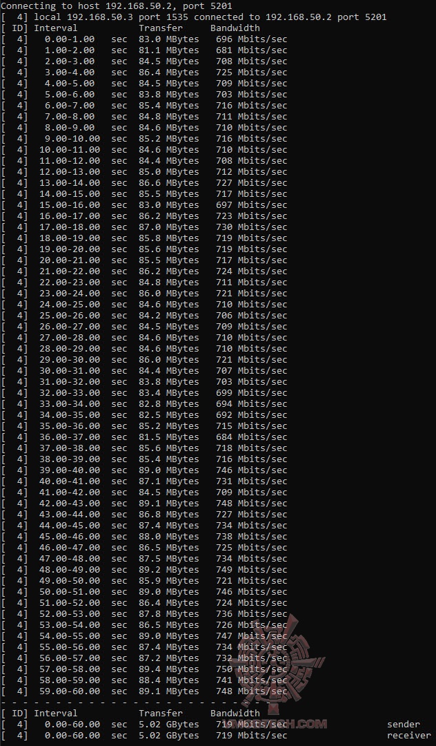 ความเร็วด้าน Client นั้น สูงครับที่เฉลี่ย 719 เมกกะบิทต่อวินาที (Lan วิ่งอยู่เก้าร้อยกว่าๆนะครับ)