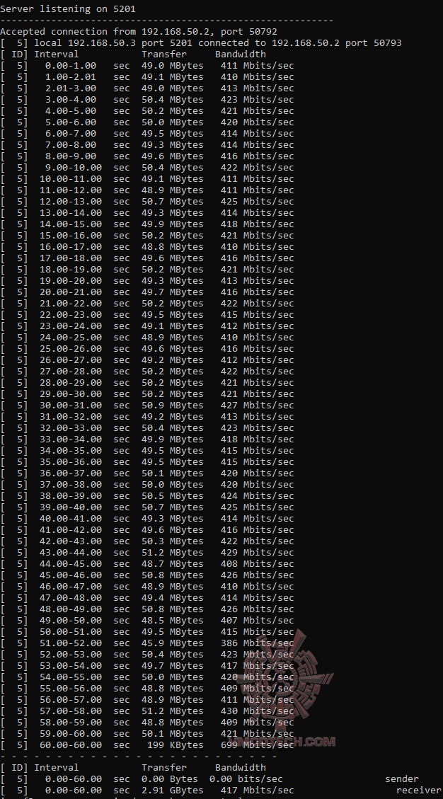 ด้าน surver จะได้ที่ 417 Mbps ซึ่งก็ถือว่าค่อนข้างดี