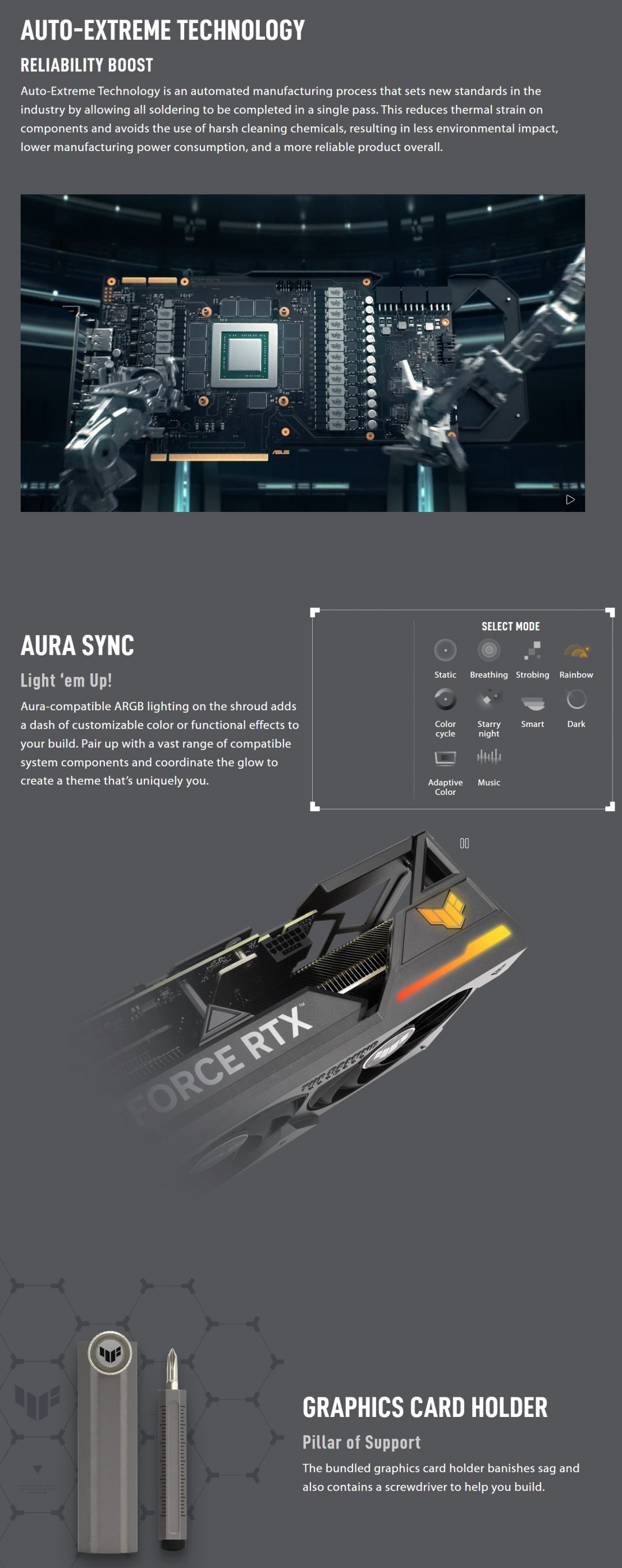 สวัสดีครับ วันนี้กลับมาพบกับบทความทดสอบประสิทธิภาพการ์ดจอกันอีกครั้งครับ วันนี้เราได้การ์ดจากแบรนด์ ASUS ที่เป็น GPU เกรดเมนสตรีมจาก NVIDIA กันบ้างเป็นรุ่น ASUS TUF Gaming GeForce RTX™ 4070 Ti สำหรับตัวการ์ดนี้มีความสวยงามในรูปแบบซีรีย์ TUF Gaming ที่อาจจะไม่หวือหวาแต่ก็ทรงพลัง ตัวการ์ดนั้นอัดแน่นไปด้วยเทคโนโลยีเรือธงของ GeForce RTX™ 4070 Ti เช่น DLSS3 ตัวการ์ดนั้นประกอบไปด้วยแรมแบบ GDDR6X จำนวน 12 กิ๊กกะไบท์ ผนวกเข้ากับชุดระบายความร้อนของ ASUS เอง เอาเป็นว่าเราค่อยๆไปทำความรู้จักกับรายละเอียดของการ์ดกันเลยดีกว่าครับ