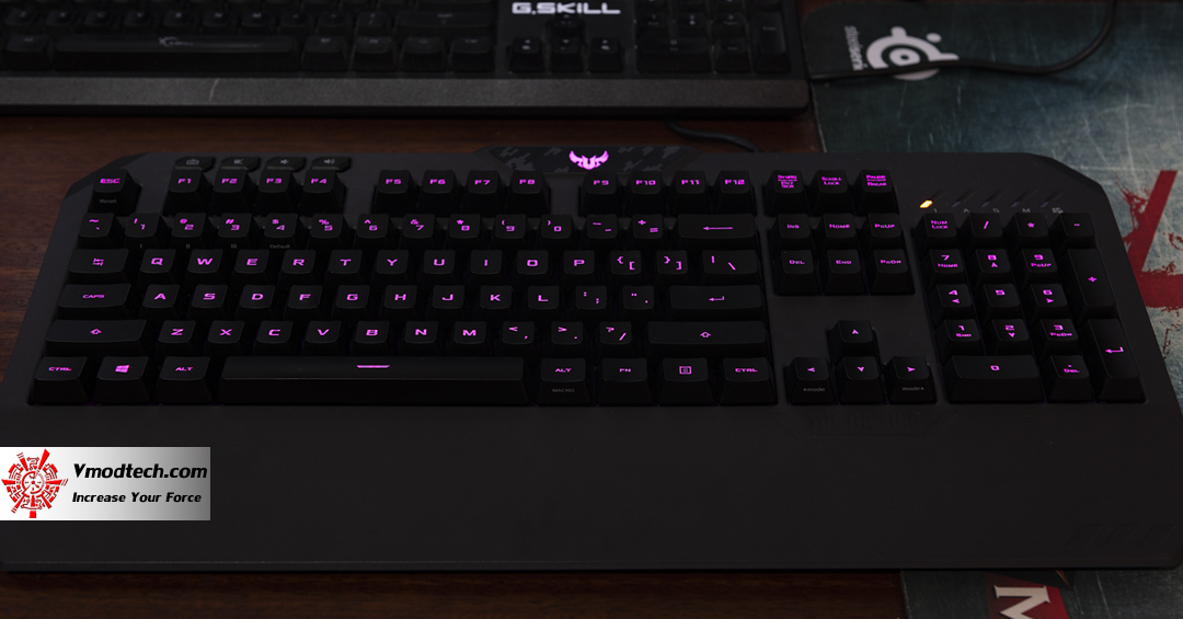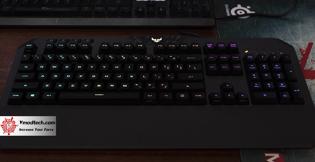 สวัสดีครับ กลับมาพบกับบทความจากหน้าเว็บไซด์ Vmodtech กันอีกครั้งนึง วันนี้เรายังมีเกมส์มิ่งเกียร์ในซีรีย์ TUF Gaming จาก ASUS มารีวิวอีกชิ้นนึง ซึ่งวันนี้จะเป็น ASUS TUF K5 Gaming Keyboard นั่นเอง TUF K5 นั้นเป็นคีย์บอร์ดแบบ Tactile Mech-Brane สวิทซ์ พูดกันง่ายๆก็คือปุ่มที่มีสวิทซ์ที่ให้สัมผัสคล้ายกับแมคคานิคอล สวิทซ์นั่นเอง ตัวคีย์บอร์ดนั้นยังได้ถูกออกแบบมาให้ทนทานต่อการใช้งานมากกว่าปกติ ตัวแสงสีบนคีย์บอร์ดนั้นสามารถปรับแต่งได้จากปุ่มบนบนตัวคีย์บอร์ดเองเลยไม่ต้องใช้ซ๊อฟแวร์ครับหากต้องการปรับเอฟเฟก เราค่อยๆมาชมความน่าสนใจของ TUF K5 กันต่อเลย