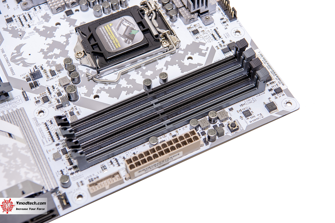 …Memory Slot แบบ Dual Channel ที่มากัน 4 Slots ได้ขนาดความจุรวมทั้งหมดสูงสุดที่ 32GB ครับ และยังมีสวิทซ์ MemOK อยู่บริเวณนี้ด้วยครับ
