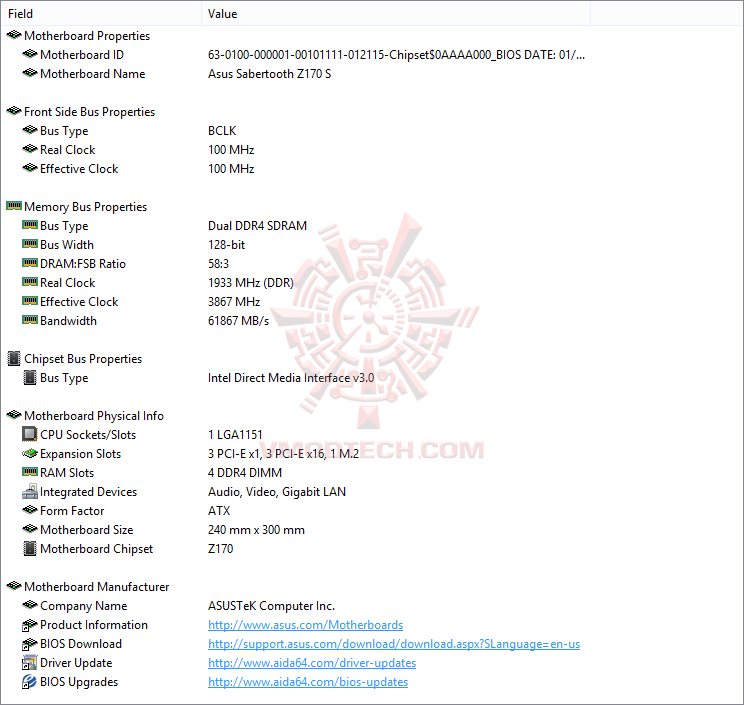 | .Motherboard | ..ASUS TUF SABERTOOTH Z170 S |