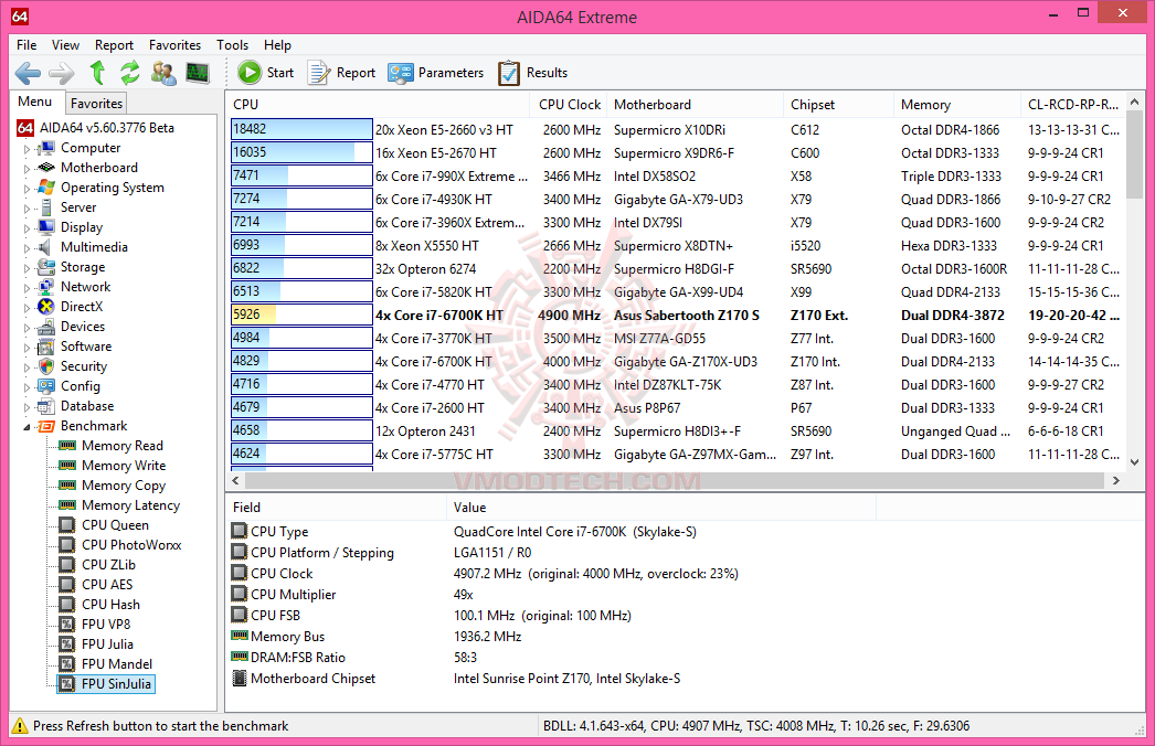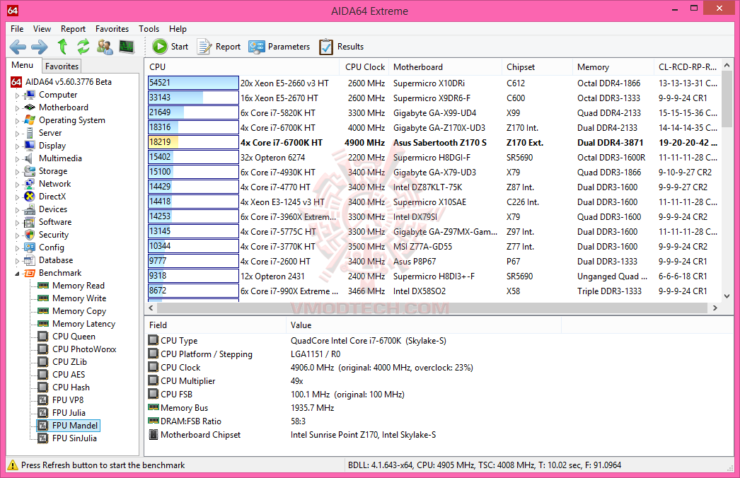 6th Generation Intel® Core™ i7-6700K @ 4,911.96MHz Bclk 100.24MHz