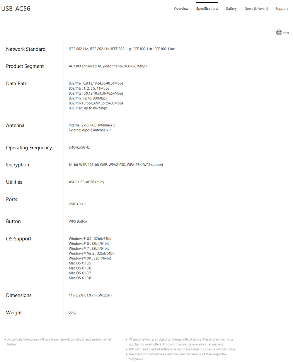 > ASUS USB-AC56 SPECIFICATION <