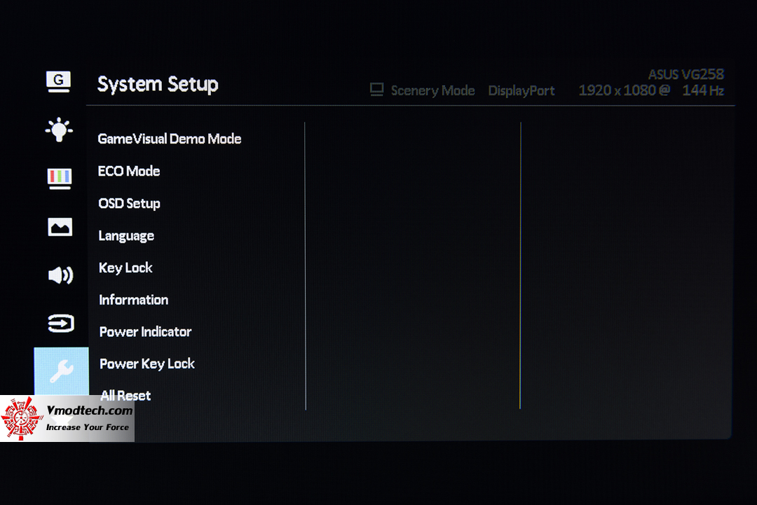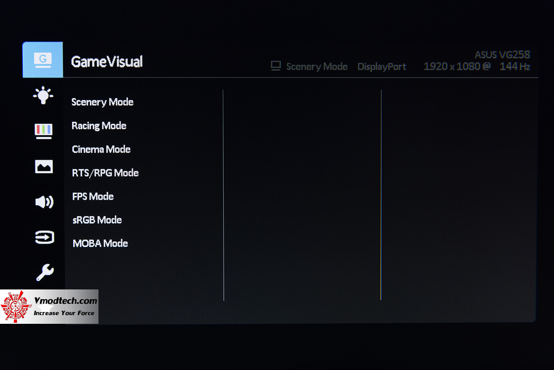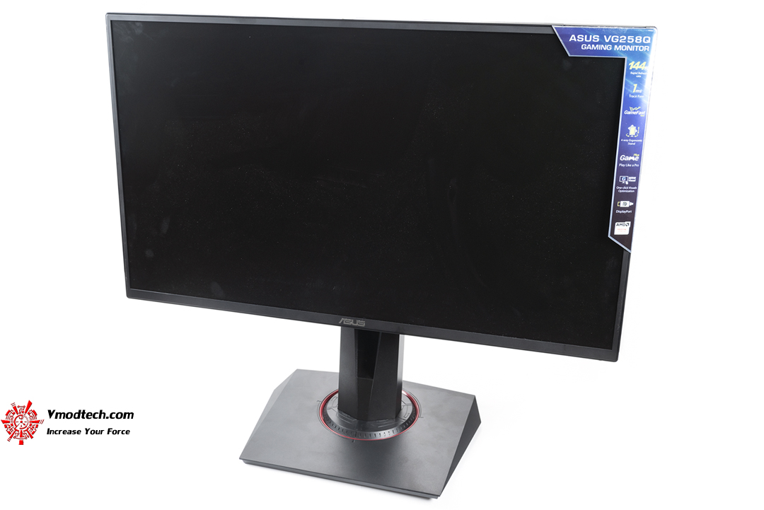 ASUS VG258Q ตัวจอมีขนาด 24.5 นิ้ว ความละเอียด Full HD (1920 x 1080) พาแนลแบบ TN ที่มีเรสป้อนท์ไทม์ 1 ms และมีรีเฟรชเรทที่ 144 Hz