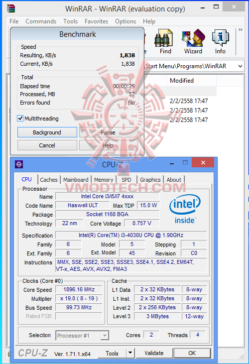 โมเดลที่กำลังจะทดลองนี้ติดตั้ง CPU Intel Core i3 4030U ซึ่งมี 2 คอร์ 4 เธรด มี L3 ขนาด 3 เมกกะไบท์