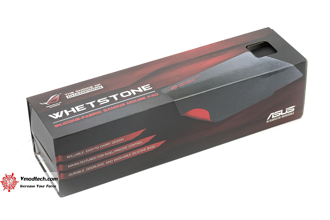 ด้านข้างกล่องนั้นมีการแนะนำตัวไว้คร่าวๆว่าตัว WHETSTONE นั้นออกแบบให้สามารถม้วนเก็บได้ ตัวพื้นผิวนั้นถูกออกแบบมีให้ความหยาบเหมาะกับความต้องการในการคอนโทรล