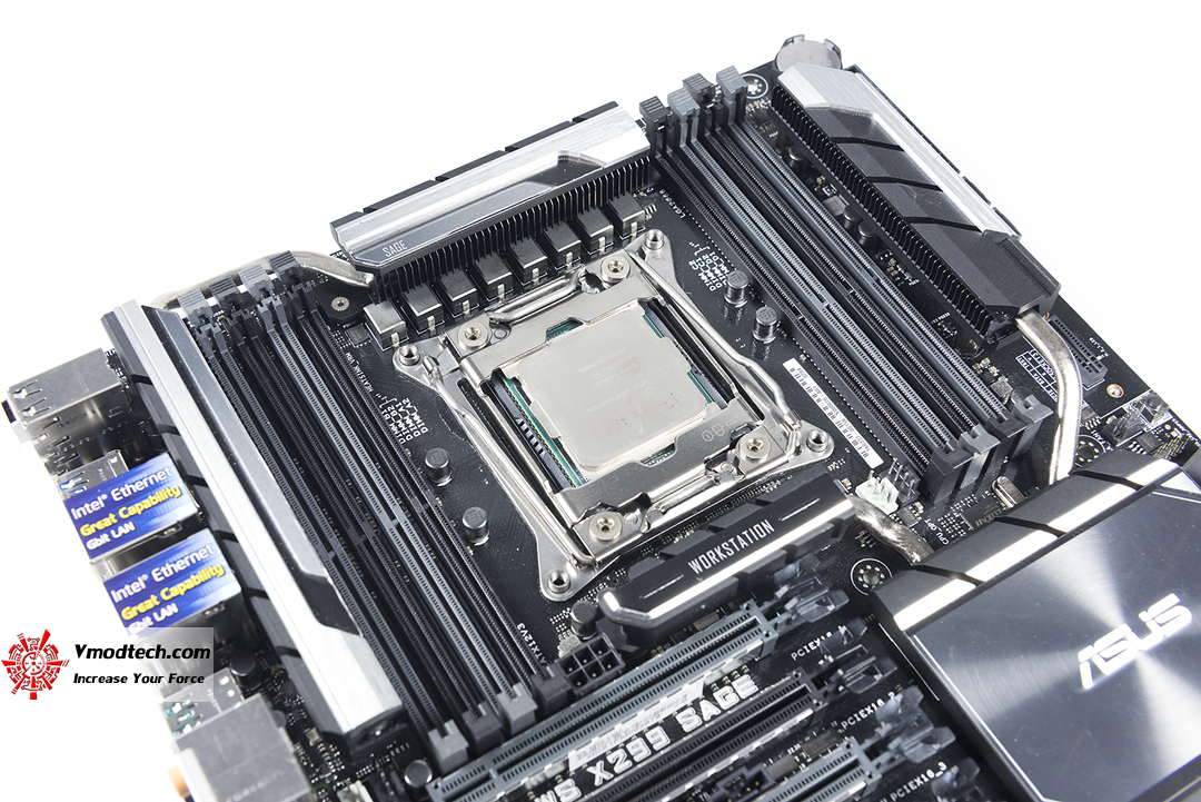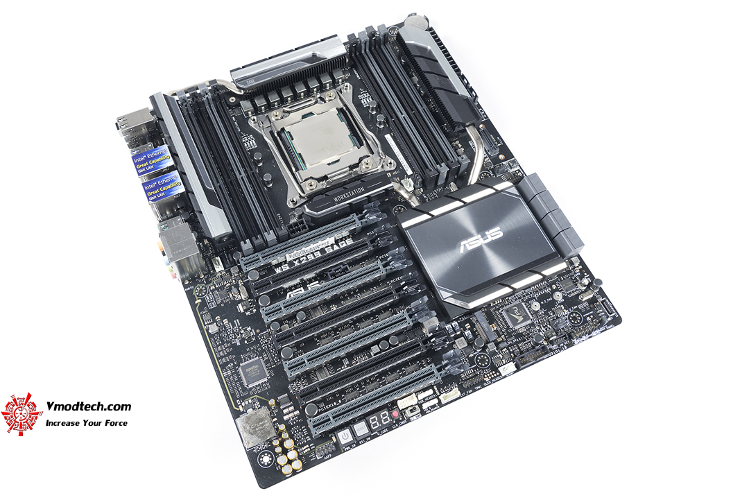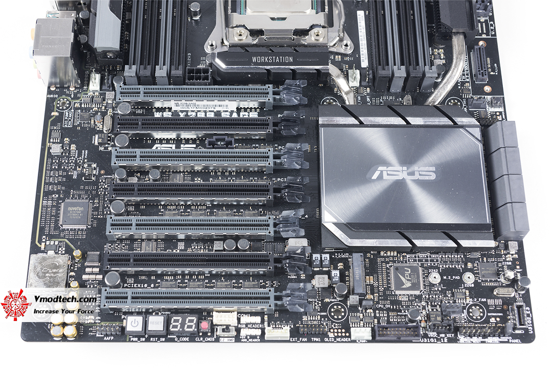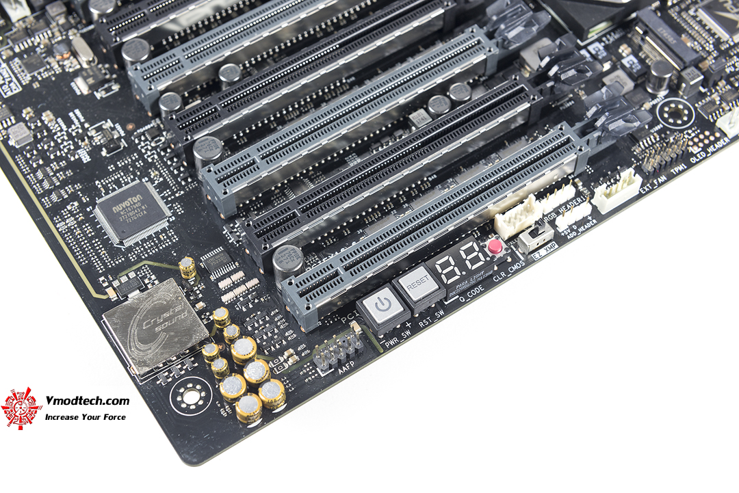 จุดเด่นที่เห็นบนบอร์ดนี้ก็คือพอร์ทเชื่อมต่อแบบ PCIe ที่มีมาให้มากถึง 7 ช่องทำให้สามารถเชื่อมต่อกราฟฟิกการ์ดที่มีความหนาสองสล๊อดได้ 4 การ์ดแบบพอดีๆ โดยเวลาที่เราเสียบใช้งานต้องเสียบการ์ดให้ถูกช่องเพื่อให้ได้แบนด์วิดท์ที่ 16X ทุกครั้ง ตรงนี้สามารถตรวจสอบได้จากคู่มือหน้า1-8 ครับ (single x16 or dual x16/x16 or triple x16/x16/x16 or quad x16/x16/x16/x16 or seven x16/x8/x8/x8/x8/x8/x8) โดยความเร็วนั้นจะไม่ตกเนื่องจากบอร์ดนี้บรรจุ Chip PLX ที่จะช่วยเพิ่มความสามารถในการใช้งานการ์ดจอเข้าไป