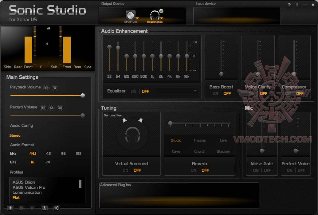 พื้นฐานเสียงของ ASUS XONAR U5 นั้นน่าสนใจครับ โทนเสียงโดยรวมนั้นจะอมๆนิดๆ เสียงย่านกลางไม่เปิดเท่าที่ควร โทนเสียงโดยรวมออกแข็งๆ นัยนึงคือน่าจะเป็นการออกแบบเสียงให้มีความแข็งเพื่อรองรับเสียงในเกมส์ต่างๆโดยเฉพาะอย่างยิ่งเกมส์ FPS หรือเกมส์มันๆรูปแบบต่างๆนั่นเอง รายละเอียดเสียงมีพอประมาณ เสียงกลางจูนมาโด่งเล็กน้อยและลาดลงไปทั้งด้านแหลมและทุ้ม เสียงด้านทุ้มนั้นมีมวลหนาพอประมาณ มวลเสียงไม่ใหญ่มากหากเทียบกับมวลจากเสียงกลาง ปลายเสียงแหลมไปไม่ไกลแต่จะไม่คมซิบๆ ทั้งหมดอยู่บนพื้นฐานเสียงที่อยู่ระหว่างความพริ้วหวานกับแข็งๆ