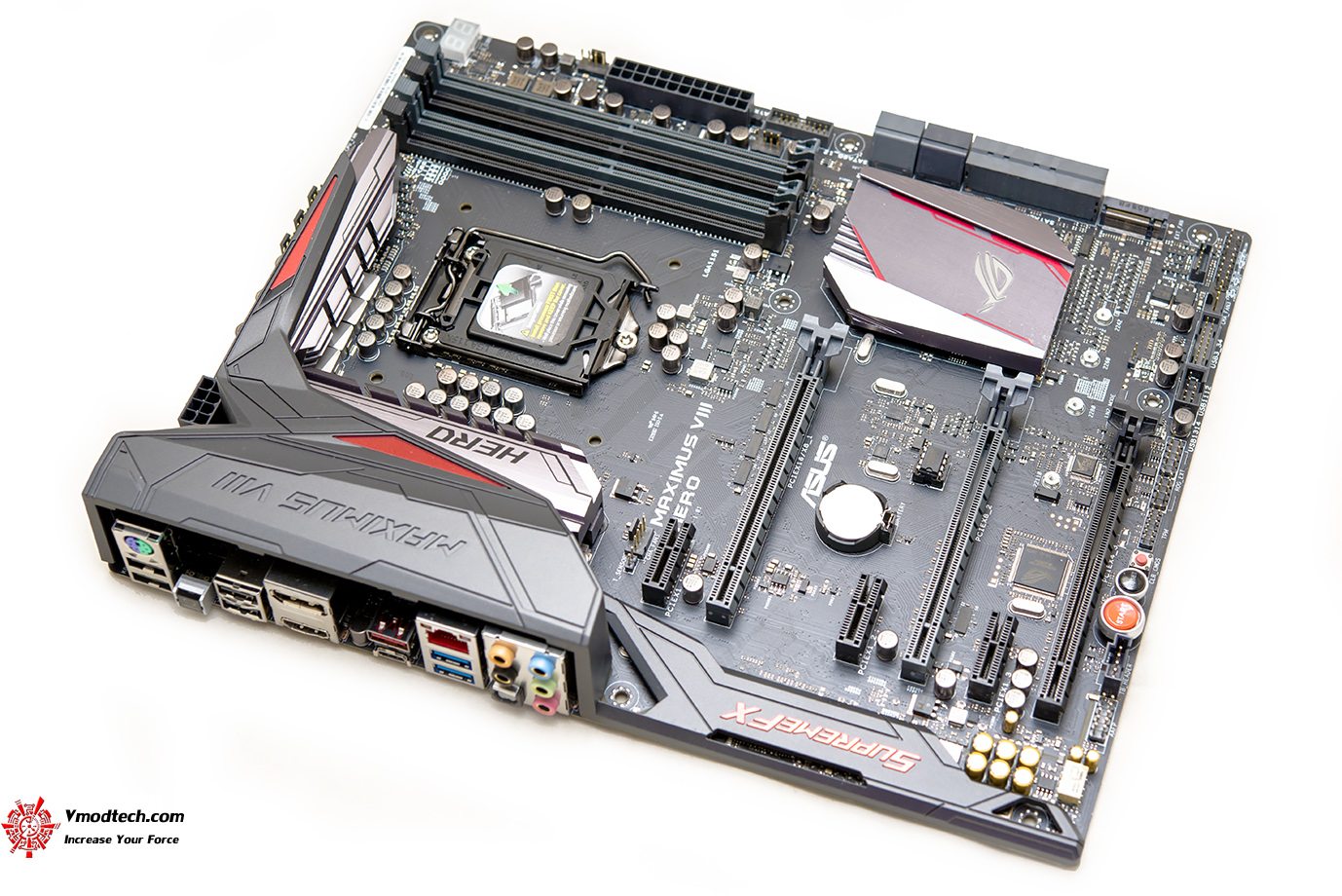 หน้าตาของมาเธอร์บอร์ดรุ่นนี้ จะออกแนวเข้มขรึมดำคาดเทาแดงดุดัน มองเผินๆนึกว่าเป็นบอร์ดในตระกูล ASUS ROG เลยครับ