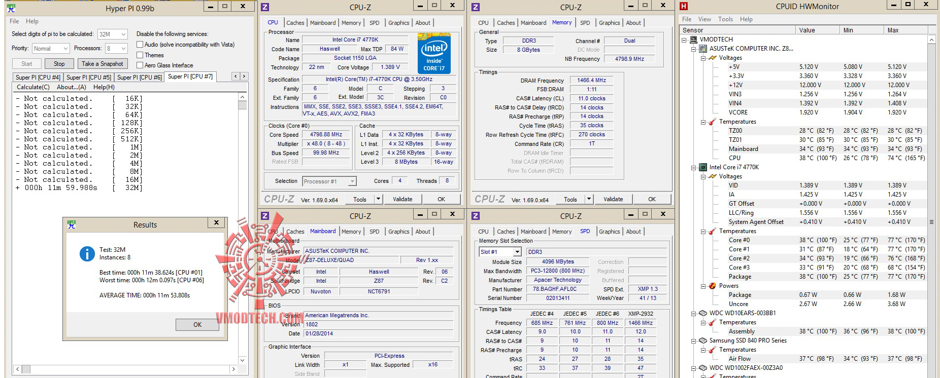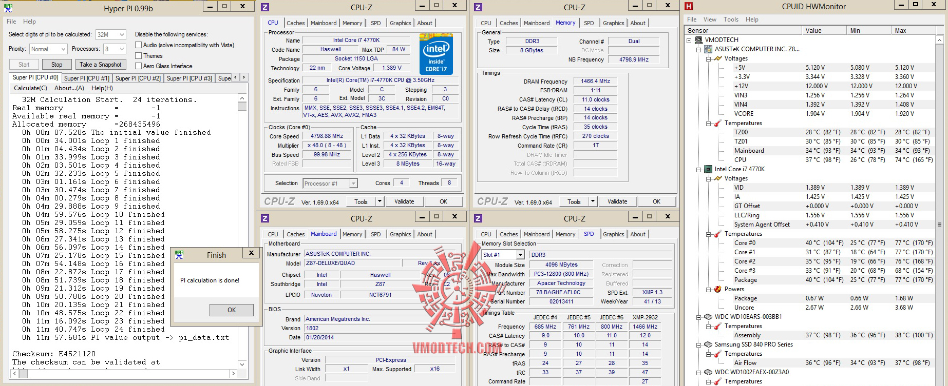 สำหรับ ชุดทดสอบ SuperPI1MBจบไปที่ 7.514วินาที , 32MB จบไป6นาที 38.86วินาที แรงในระดับมาตราฐาน 4.8Ghzครับ , ส่วน HyperPI32MB ก็ผ่านหมดแรงแบบนิ่งๆใช้งานกันได้จริงอย่างมีเสถียรภาพครับ