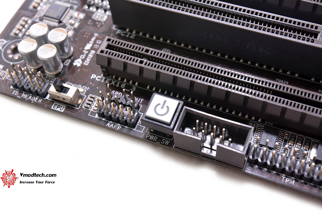 ช่องต่อ Front Panel ต่างๆของมาเธอร์บอร์ดรุ่นนี้ก็มากันอย่างครบถ้วน แถมด้วยสวิทซ์ Power อีกต่างหากครับ