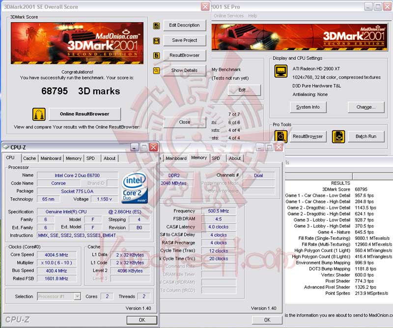 ถ้าผมจำไม่ผิดเนี่ย ตั้งแต่ผมนั่งเล่นBenchmarkตัวนี้มา ตัวผมเองไม่เคยทำคะแนนของ3DMark05 เลย23K มาก่อนเลยครับ ไม่ว่ากับSystemตัวใด ระบบระบายความร้อนแบบไหน แต่เจ้าATI HD2900XT ตัวนี้กับพาคะแนนทะลุ23,296คะแนนไปแบบหน้าตาเฉยครับ เห็นคะแนนแล้วตัวผมยังอึ้งเลยครับ