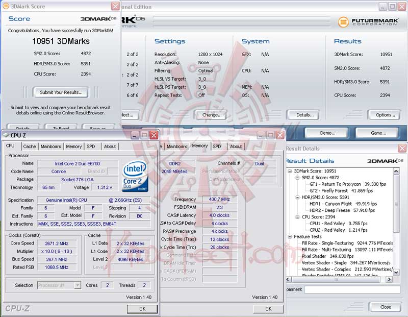 เดิมๆหมดทุกอย่างก็ทำคะแนน3DMark06ทะลุหมื่นได้แบบไม่ยากเย็นเลยครับ และในส่วนของAquamark3 ที่ไม่มีผลนี้ก็คือสามารถเทสต์ได้จนจบนะครับ แต่พอจบแล้วกลับจอมืดคะแนนไม่ออก ซึ่งคาดว่าน่าเป็นที่ไดรเวอร์นะครับ รอไว้ถ้ามีโอกาสหน้าไดรเวอร์ใหม่ดีๆออกมาจะนำผลเทสต์มาให้ชมกันอีกรอบนะครับ อิอิ