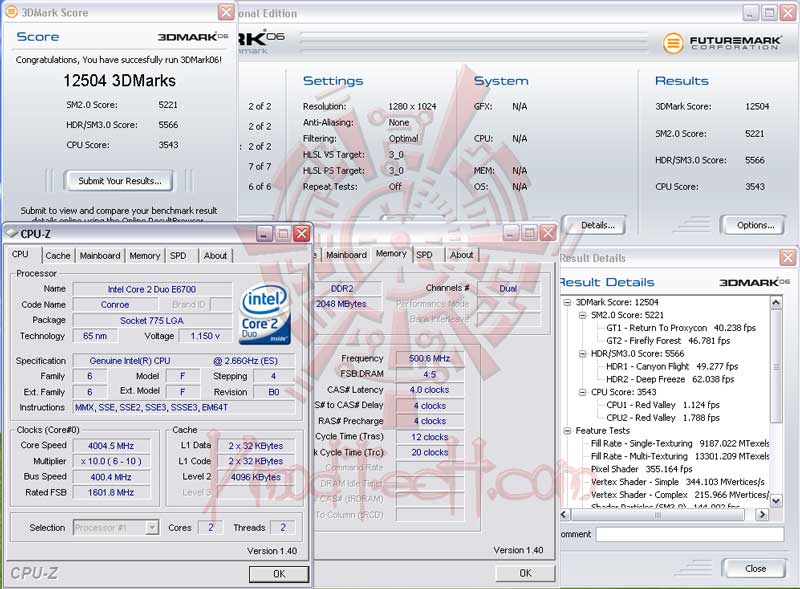 3DMark06 กับคะแนนระดับ12.5K ไม่ใช่เรื่องยากจนเกินไปครับ สำหรับการ์ดจอตัวนี้ นี่ถ้าผมมีCPU QuadCore คะแนนของ3DMark06 คงทะลุไปไกลกว่านี้อีกพอสมควรเลยครับ