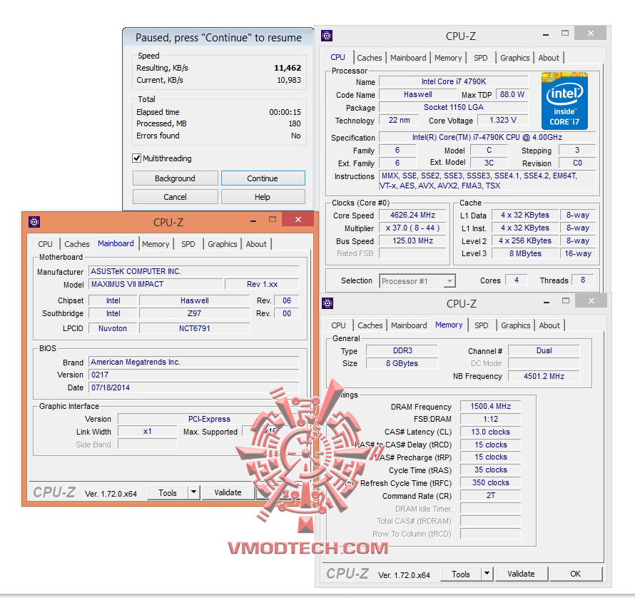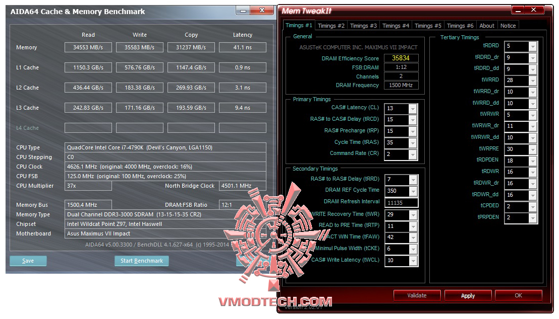 ค่า Memory Read, Write ก็ทำออกมาได้ดีครับอยู่ที่ Read 34553MB/s และ Write 35583MB/s โดยผมกด Timing ไปที่ TRDRD 5 /TWRWR 5 ครับ