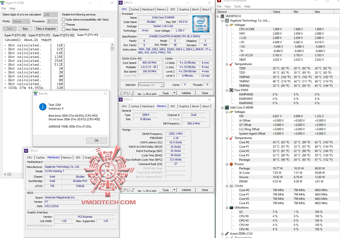 SuperPI1MB จบไปที่ 7.907นาที , 32MB จบไป6นาที 53.238วินาที ส่วน HyperPI 32MB ก็ผ่านหมดครับอยู่ที่ 7วินาทีต้นๆ แรงดีเยี่ยมใช้งานได้จริงอย่างมีเสถียรภาพครับในบัสความเร็วสูงๆที่ 3100Mhz