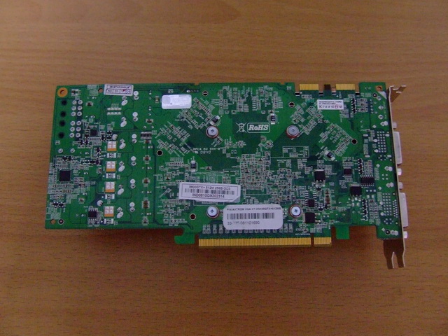 ด้านหลังการ์ดครับ ผมเห็นมาหลายตัวแล้วสำหรับ 9800GTX+ หลังการ์ดนี้เต็มไปหมดอะไรก็ไม่รู้ อิอิ งัยจับกันระวังหน่อยนะครับ เดียวพวกตัวเล็กๆมันจะหลุดติดมือมาได้ อิอิ