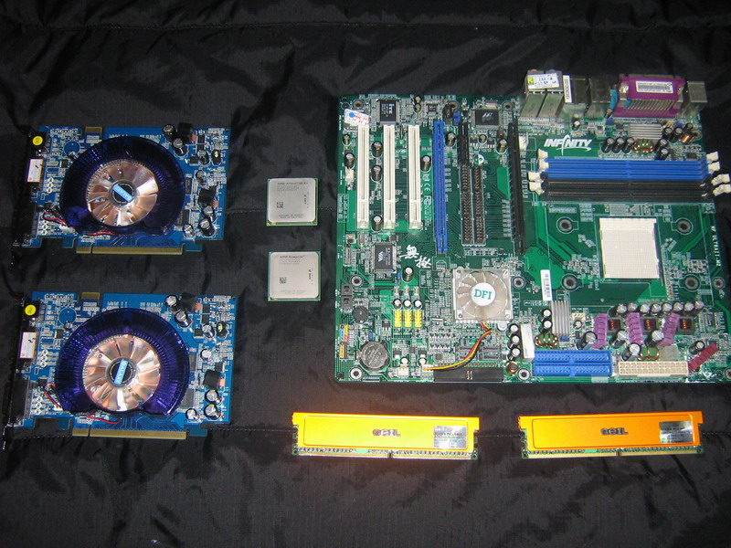 อิอิ สวัสดีครับ ไม่มีไรมากครับเนื่องจากได้ 8600GT มาอยู่ในมื 2 ตัว เลย หาทาง sli ซะหน่อยเพื่อดูพลังกับ cpu ระดับล่างๆ แล้วก็ล่างมากๆ ว่าจะไปได้ขนาดใหน เนื่องด้วย DFI ที่มีอยู่ไม่สามารถทำการ sli ได้ แล้วผมจะทำงัยดีละครับงานนี้ แต่ chipset รุ่นนี้มันโมได้นี้น่า นี้ก็ ตี 3 แล้วจะไปหาคอนดักซีพเพนจากใหนเนีย เอาละ บัดกรีเลยดีกว่า อิอิ