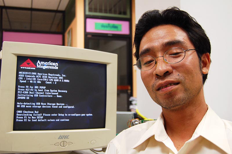 ไม่มากไม่มายครับ แค่ลากจากเดิมๆที่วิ่งที่2.40GHz ไปบูตติดที่40.51GHzเท่านั้นเองครับ ถ้าคิดเป็น%ก็แค่1588% Overclock เท่านั้นเอง ไอ้120%ของท่านน่อมอ่ะ ผมขอบอกว่ากระจอกมากครับ