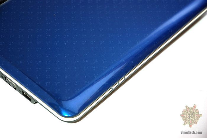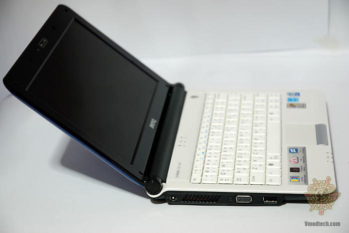 พอร์ตเชื่อมต่อด้านซ้ายมือ มี VGA out และ USB2.0 มาให้เพียง 1 พอร์ตเท่านั้น ช่องลมระบายอากาศ ดีไซน์ให้มีลักษณะเฉียง และ มน สอดคล้องกับลายเส้นส่วนใหญ่ของตัวเครื่อง