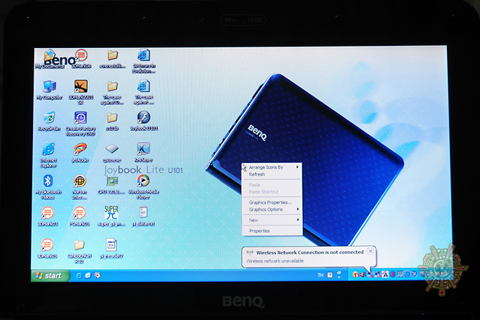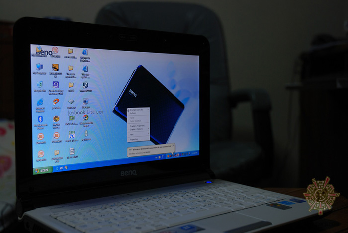บอดี้พลาสติก ไม่ก๊องแก๊ง แต่ก็ไม่ได้ดูแน่นปึ้กอะไรมากมาย ตามไสตล์ Netbook ครับ ความที่เป็นคอนเซ็ปต์ของคอมพิวเตอร์ราคาประหยัด BenQ Joybook Lite U101 นั้น มีการดีไซน์ที่เป็นโค้งมน ลายคิกขุอะโนเนะ BenQ เรียกมันว่า “อิโมจิคอน ซัง” ครับ บอดี้สีน้ำเงิน ส่วนตัวผมคิดว่า ดูแล้วสะดุดตาดี และต้องขอชมว่า ถึงจะเป็นลายนิ้วมือง่าย แต่ก็ไม่เป็นรอยขีดได้ยากแน่นอน และลายนิ้วมือ ก็ยังจะสังเกตุได้ยากอีกต่างหาก เพราะความที่เป็นเครื่องสีทึบ และไม่ได้มีความเงาจนเกินไปนั้นเอง